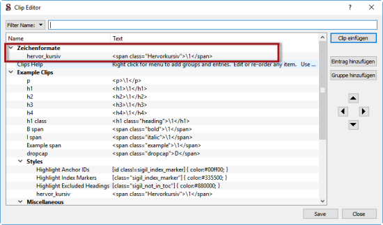 - im Editor links die „Regel“ (also die „Formatvorlage“) anklicken